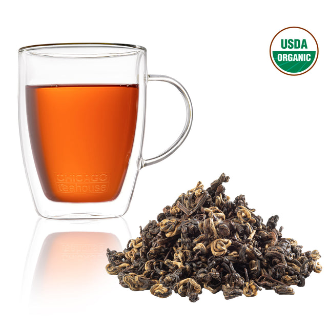 Tightly rolled curls shine with their golden buds. The unfurling leaves in the cup are a sight to behold as the reddish amber infusion builds intensity. Malty honey, maple and spicy tobacco notes give way to a truffle-like dampness that lingers pleasantly on your palate.