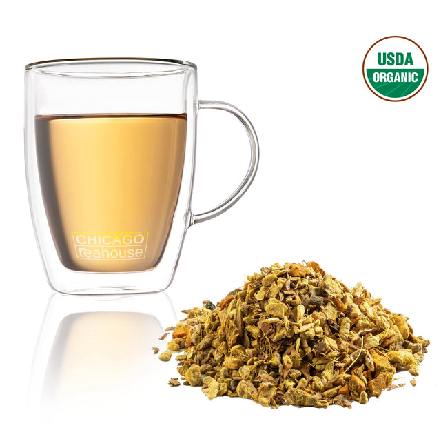 Ginger and turmeric, what a perfect pair! Delightful hint of fruit and spice. Try adding a dash of milk.