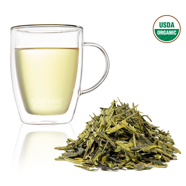 Nurtured organically within the lush terrains of the Jiangxi region, our Dragonwell green tea boasts authentic tradition in every leaf. When brewed, it imparts a soft, golden-yellow hue, complementing its light-bodied grace. As you sip, savor the sweet, smooth rhythm that dances across the palate, revealing a full-bodied charm without a trace of astringency.