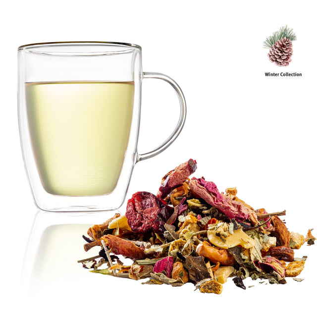 Sweet, floral, spiced, tart, and complex. Some of the ways to describe this celebration of a tea. A blend that sings the joys of the winter with candied pomegranates, star anise, beautiful petals, sliced almonds, and a blend of delightful caffeine free elements. Taste the wonders of winter in this tea.
